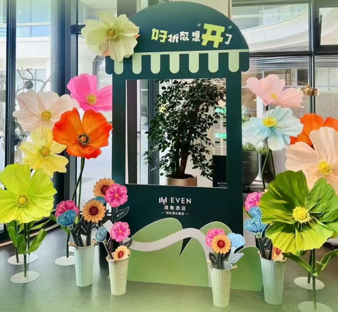 大堂的花艺装置正缓缓舒展,正如那句「花开了 人也想开了」