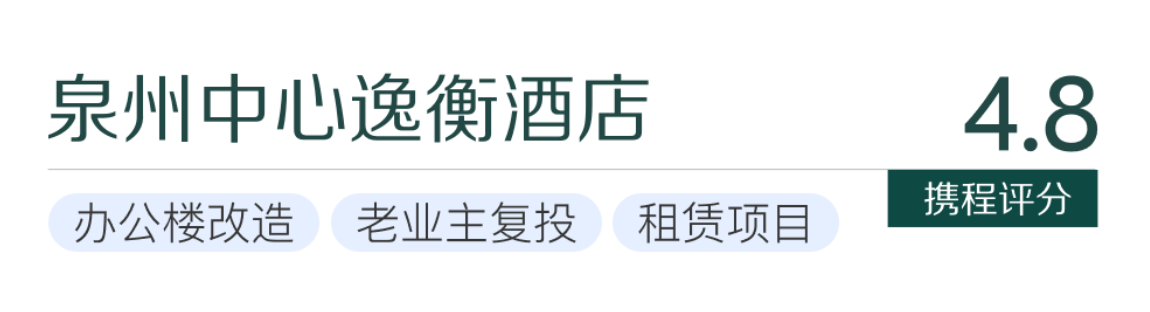 酒店新手业主的首投成功案例,开业即满房,没有爬坡期。精准定位年轻高端的商务客群,依靠逸衡品牌“健康运动+绿色生活”产品赋能,从软装到服务都透着“松弛感”,获得客群高度认可。携程4.9分的口碑,恰恰印证了这个“新手友好”投资模型的专业可靠,为新入市投资者提供了高效稳健的运营范例。