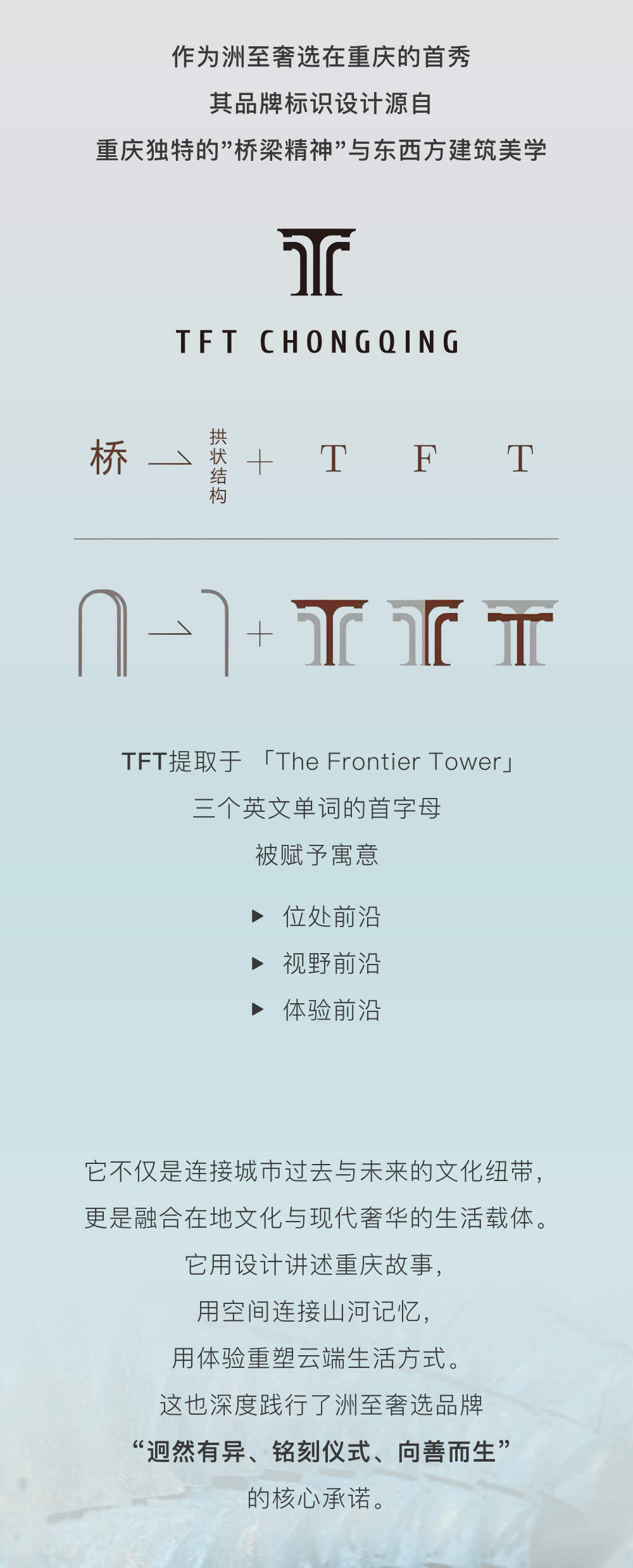重庆,中国唯一的“桥都”,2000余座桥梁横跨两江、贯穿全城,既是交通脉络,更是城市精神的象征。洲至奢选重庆TFT酒店便以此为核心灵感,深挖“桥”的文化内核,凝练出“桥连望远空,瞧影新幻城’的设计主张。